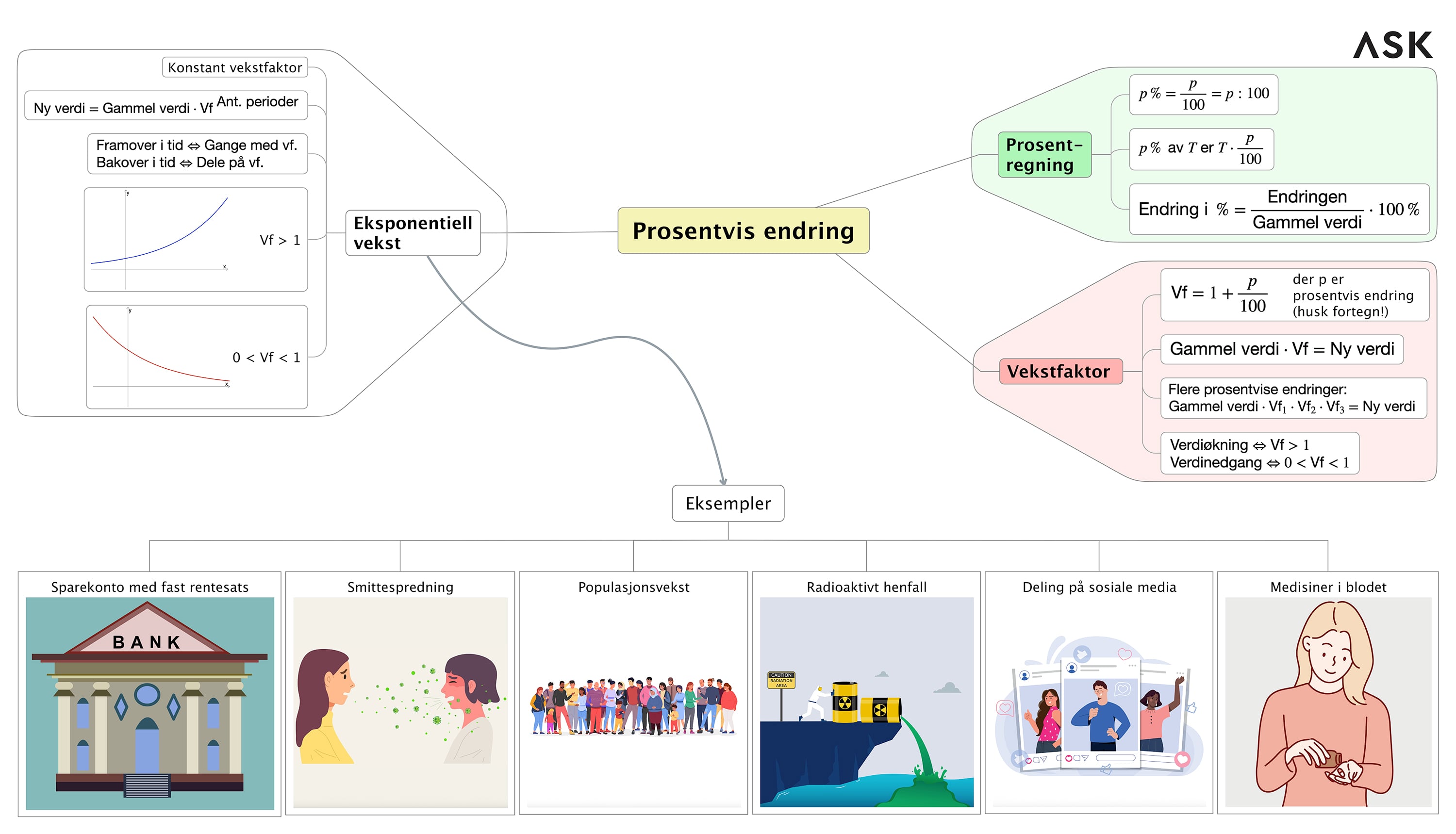 Våre visuelle tankekart spiller på lag med hjernen og fungerer som huskelapper til prøver og eksamen.